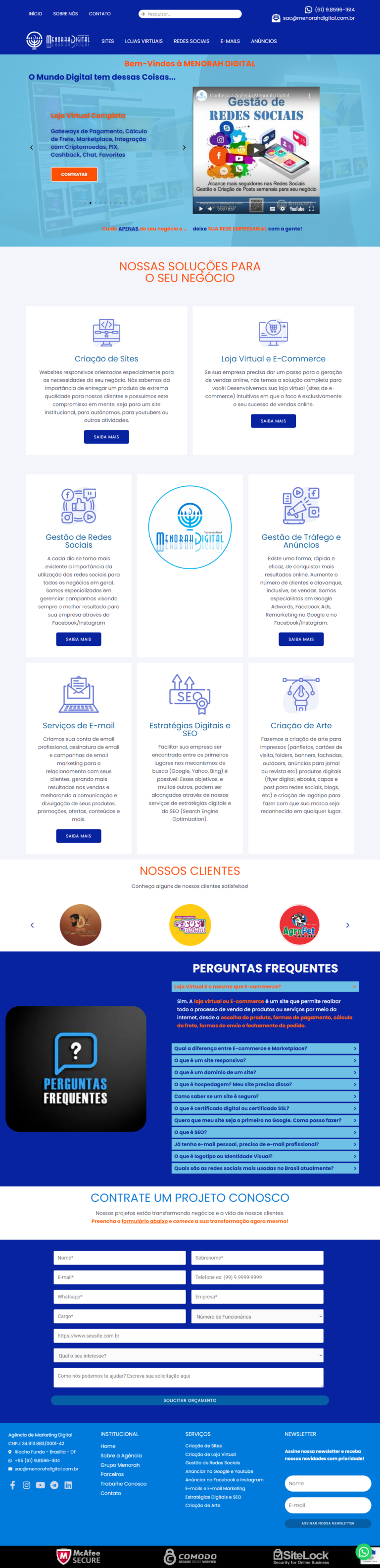 Criação de sites responsivos orientados especialmente para as necessidades do seu negócio. Sites institucionais, Sites de e-commerce (loja virtual), Site com sistema de delivery, site com sistema de agendamento, site com catálogo (para imobiliárias e concessionarias), Blogs, Páginas de Destino (Landing Page), Hotsite, Sites one-page e outros.